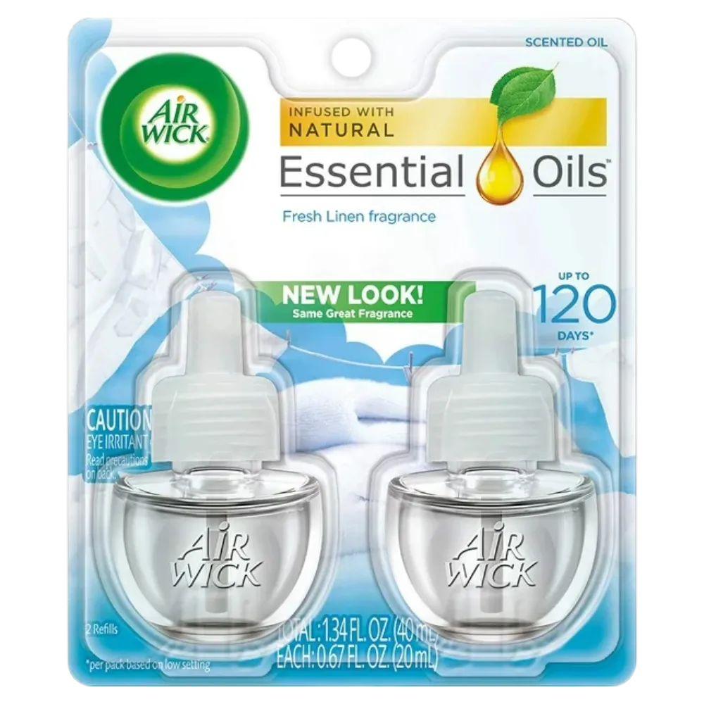 El recambio doble del ambientador de aceite perfumado Air Wick está diseñado para agregar una fragancia fresca constante y duradera a un dormitorio, baño, sala de estar o estudio. Este recambio de ambientador de aceite perfumado Air Wick viene en un paquete doble para su comodidad. Capta la frescura de la ropa de cama que se mece con la brisa, suavemente perfumada por las lilas blancas cercanas. Este recambio de aceite es fácil de usar, simplemente conecte el calentador de aceite perfumado e inserte este recambio. Cuando se acabe el aceite, puedes optar por sustituirlo por la misma fragancia o por otra diferente. Los ambientadores Air Wick Scented Oil Refills son compatibles con todos los calentadores de aceite perfumado Air Wick.