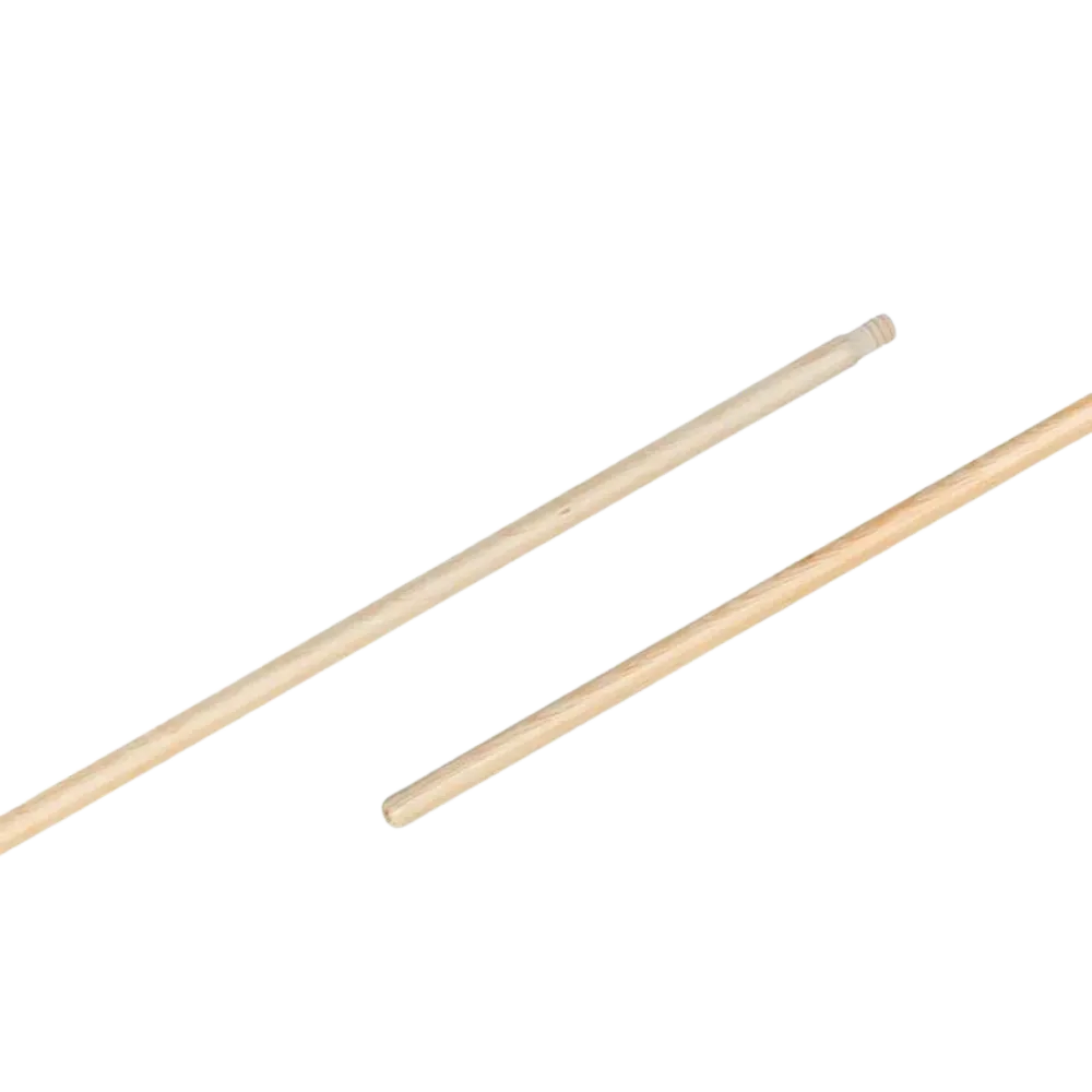 Mango de madera resistente diseñado para brindar firmeza y durabilidad en tareas de limpieza. Cuenta con una rosca metálica de 3/4” que permite un ajuste seguro a trapeadores, escobas y otros accesorios de limpieza. Su acabado liso facilita el agarre y manejo, ideal para uso doméstico o industrial.