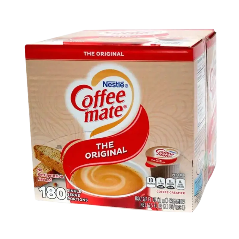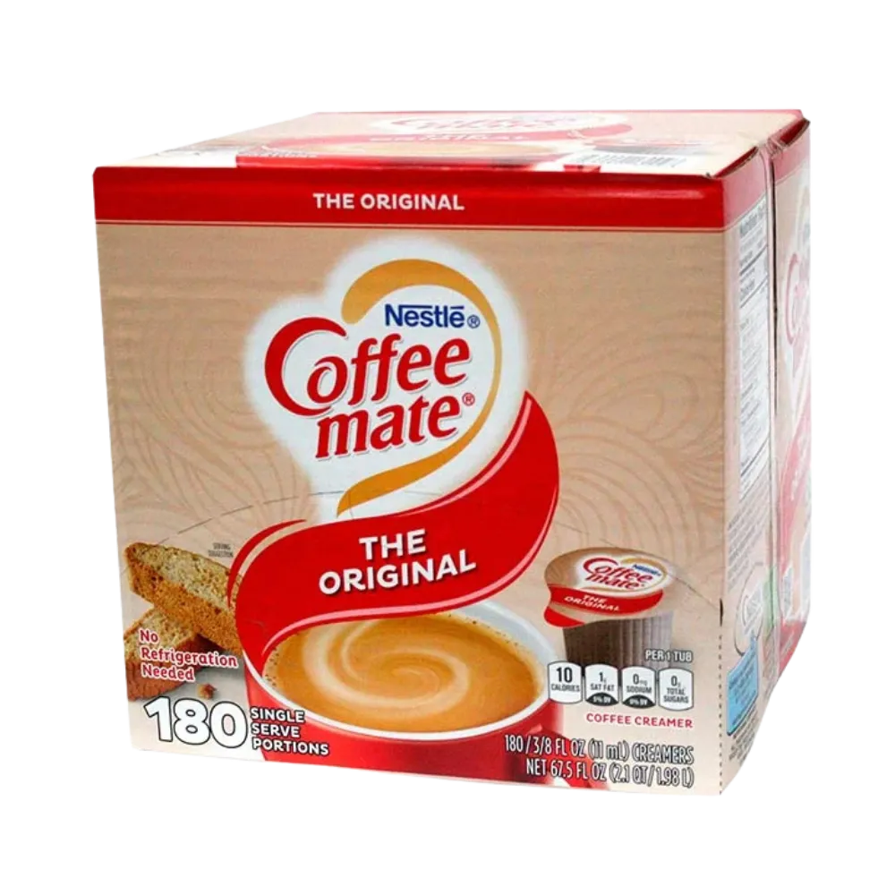 Por las mañanas disfruta tu café con la combinación perfecta con crema para café en su sabor original de la marca Coffee Mate en su presentación de 180 piezas. Coffee Mate te ofrece la mejor calidad para dejar tu café con un sabor cremoso.
