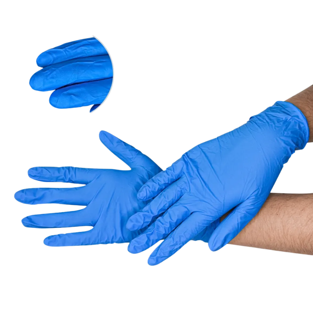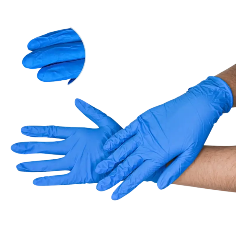 Guantes desechables de nitrilo azul sin talco. Protección contra perforaciones, desgarres y ciertos tipos de químicos. Ajuste cómodo y excelente sensibilidad al tacto. Durabilidad y resistencia superior. Mejor barrera contra químicos que los guantes de látex.