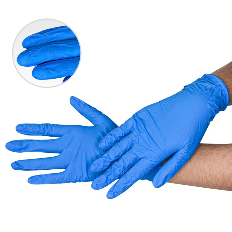Guantes desechables de nitrilo azul sin talco. Protección contra perforaciones, desgarres y ciertos tipos de químicos. Ajuste cómodo y excelente sensibilidad al tacto. Durabilidad y resistencia superior. Mejor barrera contra químicos que los guantes de látex.