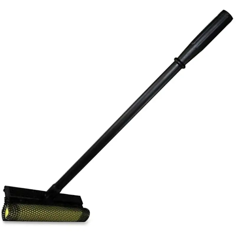 Limpiacristales / esponja, esponja cubierta de red de nailon, empaquetado con mango de polipropileno de 50,8 cm, color negro y amarillo, mide 21-1/2 pulgadas de largo por 8 pulgadas de ancho.