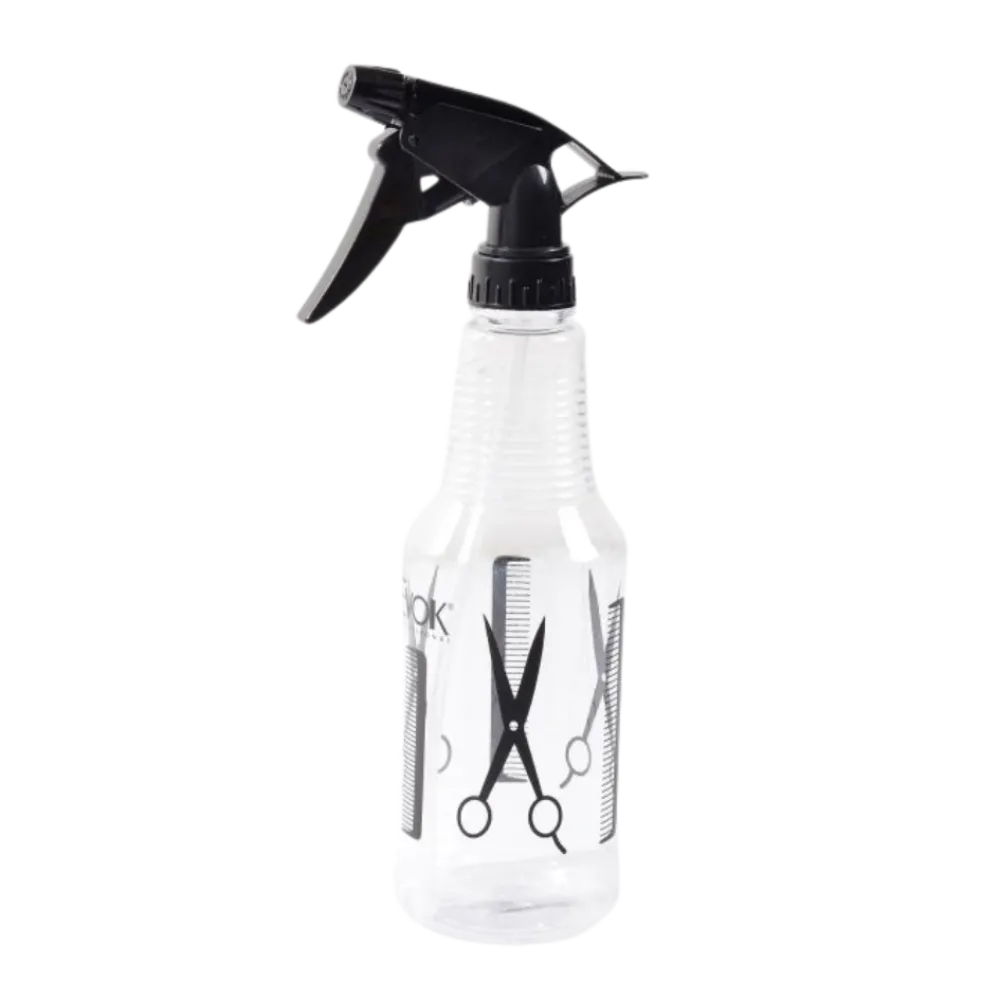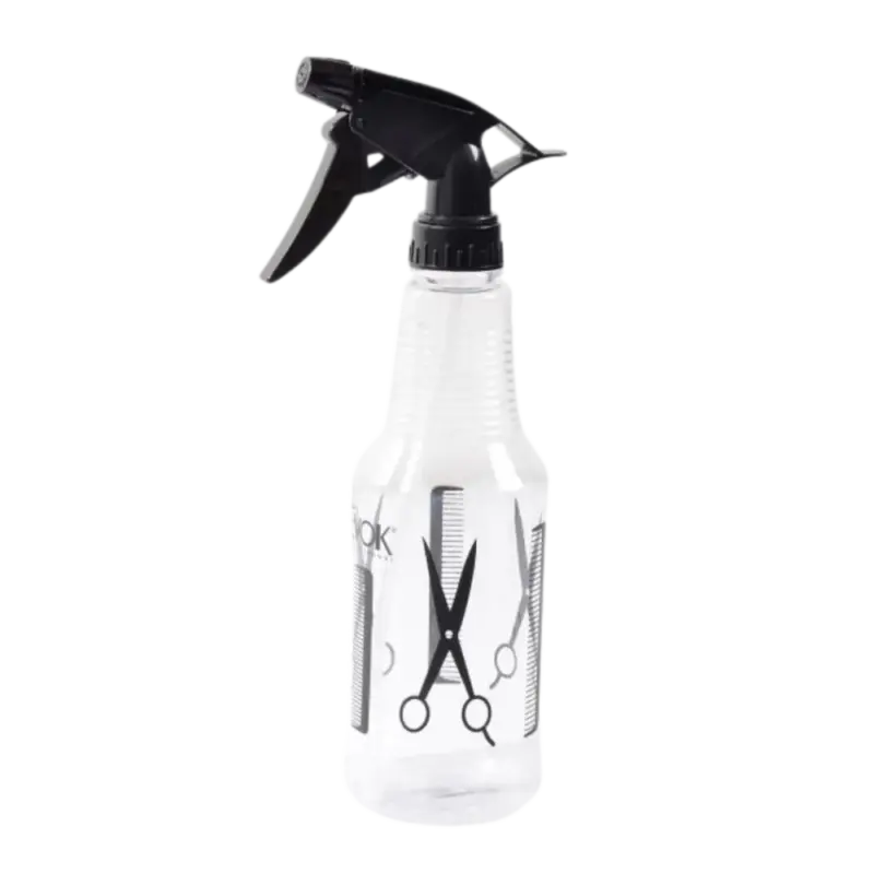 Práctico atomizador diseñado para uso profesional en barberías y peluquerías. Fabricado en plástico transparente para visualizar el contenido y con gatillo ergonómico que ofrece una pulverización suave y uniforme. Ideal para aplicar agua, alcohol o soluciones capilares durante cortes y peinados. Capacidad aproximada de 200–300 ml.