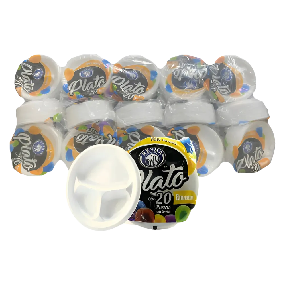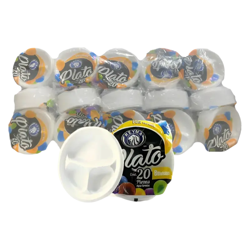 El Pack de 5 Platos Térmico #8 División Reyma es la opción ideal para aquellos que buscan funcionalidad y elegancia en sus eventos. Con un diámetro de 22 cm, estos platos redondos ofrecen el espacio perfecto para servir tus platillos favoritos, garantizando que cada comida se presente de manera impecable. Su diseño con divisiones permite una disposición creativa de los alimentos, haciendo que cada plato luzca atractivo y organizado.