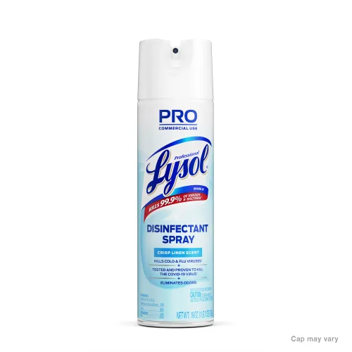 Aumente la confianza de los clientes con el rociador desinfectante Lysol® Professional que es apto para usar en superficies duras y blandas. Lysol® elimina el 99.9 % de virus y bacterias, incluido el virus que causa el COVID-19 y los virus del resfriado y la gripe si se usa tal como se indica. Ayuda a proteger las áreas de alto tránsito y las superficies muy transitadas, como escritorios, baños, pomos de puerta y barandas. Realizar una desinfección tipo hospital en superficies blandas, incluidos tapizados, cortinas, sofás, colchones y almohadones. Cumple con las expectativas de los clientes y del personal en torno a la desinfección. Simplemente rocíe y deje que el aire se seque