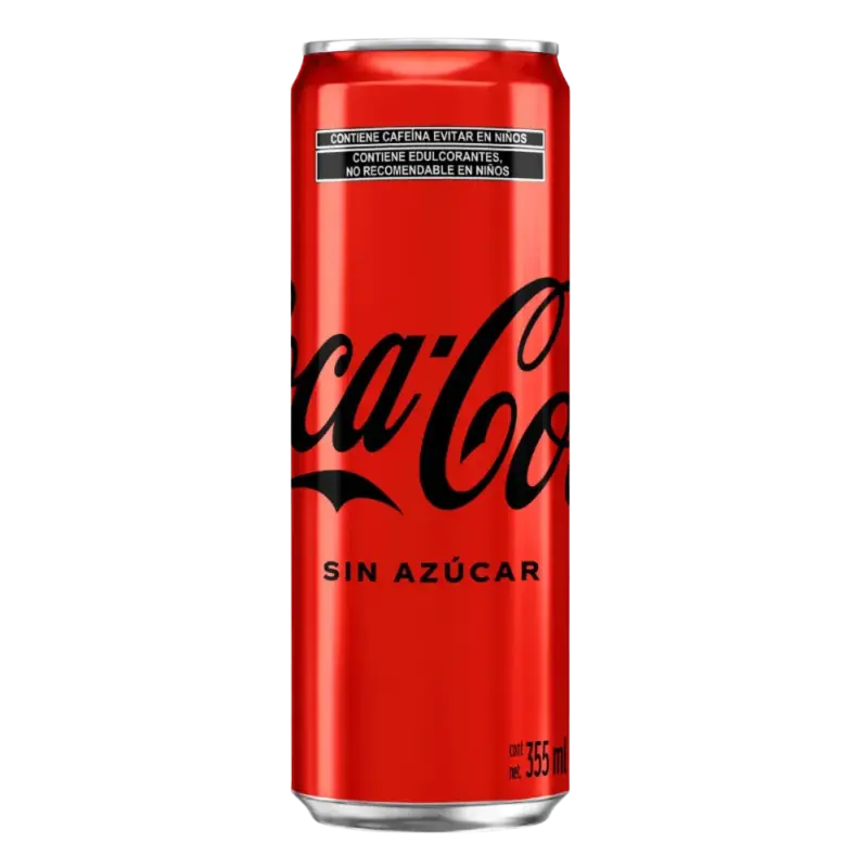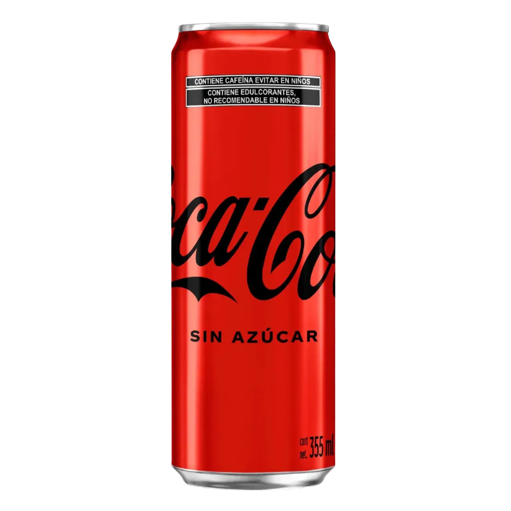 Refresco Coca-Cola Sin Azúcar 355 ml 24 Latas. Disfruta Coca-Cola Sin Azúcar en lata de 355 ml, una opción deliciosa y sin azúcar para cuando quieras consentirte y tener a la mano en todo momento. ¡Tómala bien fría! Reanímate y sigue con tus actividades de día con su delicioso sabor sin azúcar. Fenilcetonúricos: contiene Fenilalanina. Haz más ricas tus comidas con el delicioso y refrescante sabor de Coca-Cola. Coca-Cola. Siente el sabor
