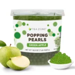 Las perlas explosivas de manzana verde de Tea Zone (o boba explosiva) son tendencia entre europeos y estadounidenses de todas las edades. Al morderlas, su sabor a manzana verde satisface el paladar de sus clientes, ofreciendo sabores tanto dulces como ácidos.