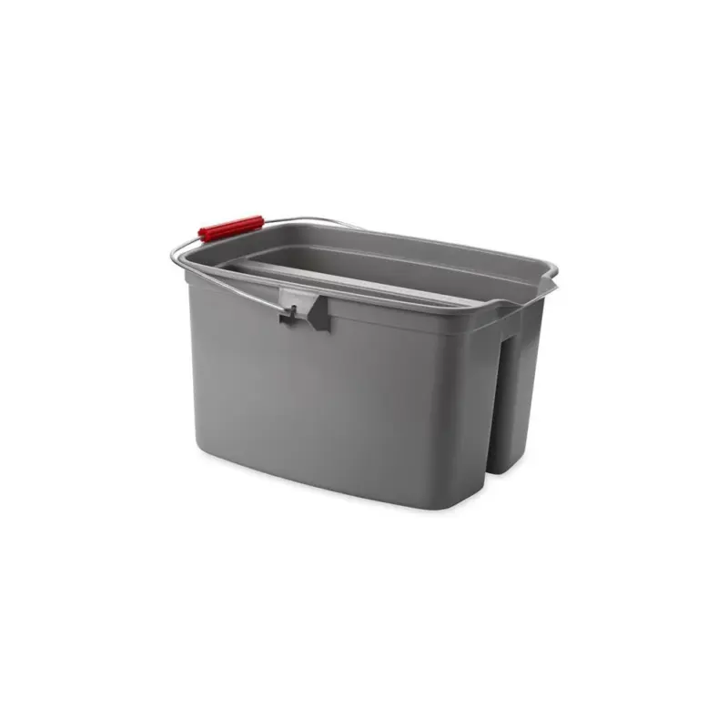 El balde plástico doble Rubbermaid Commercial hace que el uso de un trapeador de esponja sea sencillo.